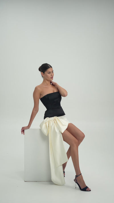 Контрастна драпірована деталь додає образу динаміки та легкого драматизму, роблячи міні-сукню не просто вечірньою, а по-справжньому ефектною. Cleo — ідеальний вибір для коктейльних подій, вечірок та особливих моментів, коли хочеться виглядати стильно та впевнено.